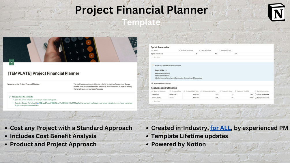 This Notion template, utilising Google Sheets, will walk you through step by step the process of financially planning for any project.